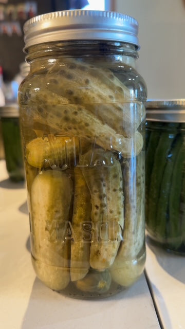 Ingredients: Cucumbers, vinegar, sugar, water, pickling salt, garlic, peppercorns and whole cloves.
